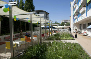 Café-Restaurant, Salon Bien-être (coiffure, soins esthétiques, réflexologie, pédicure-podologue) physiothérapie, gymnastique, ergomotricité.